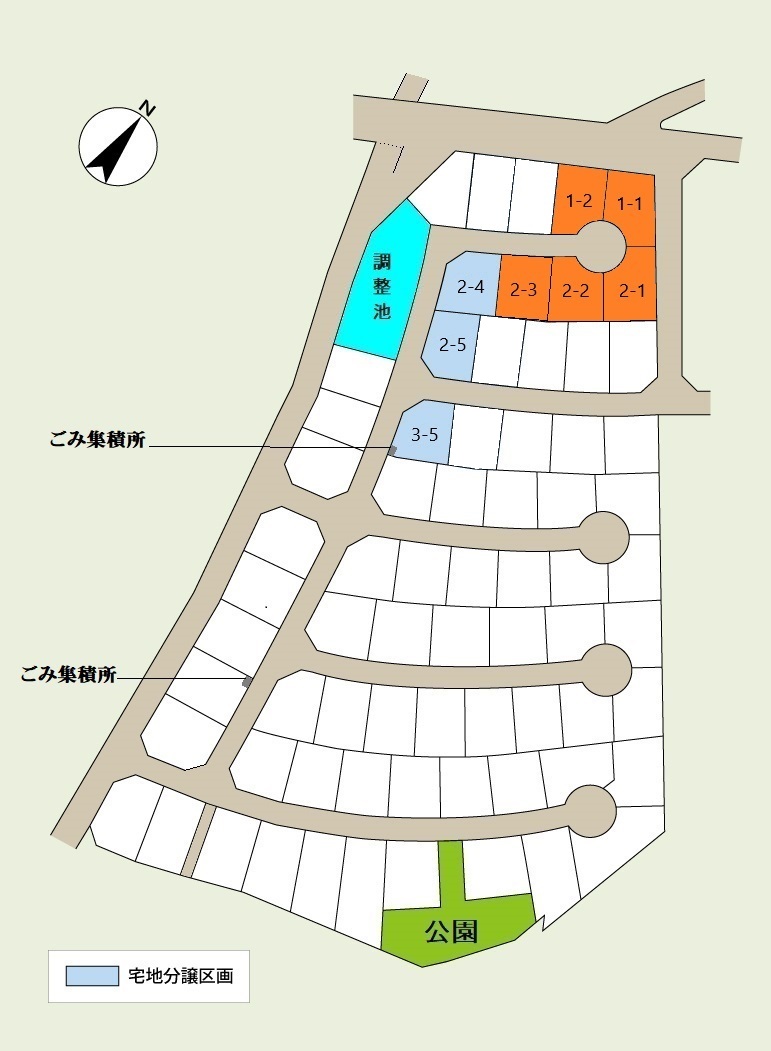 | 道路幅員 | 分譲地内 6.00m、分譲地外 東北側市道約6.7m・西北側市道約10.0m アスファルト舗装 |