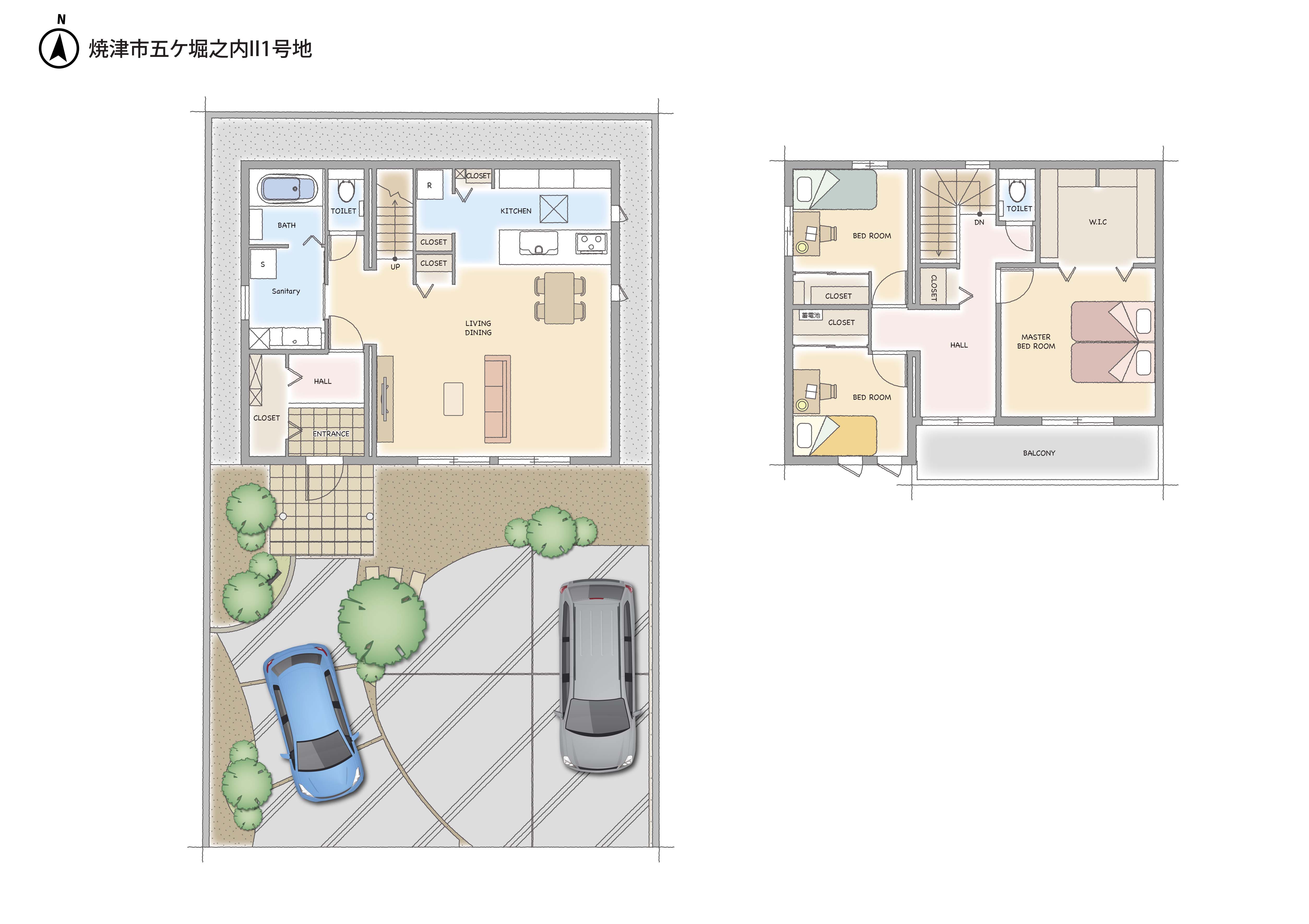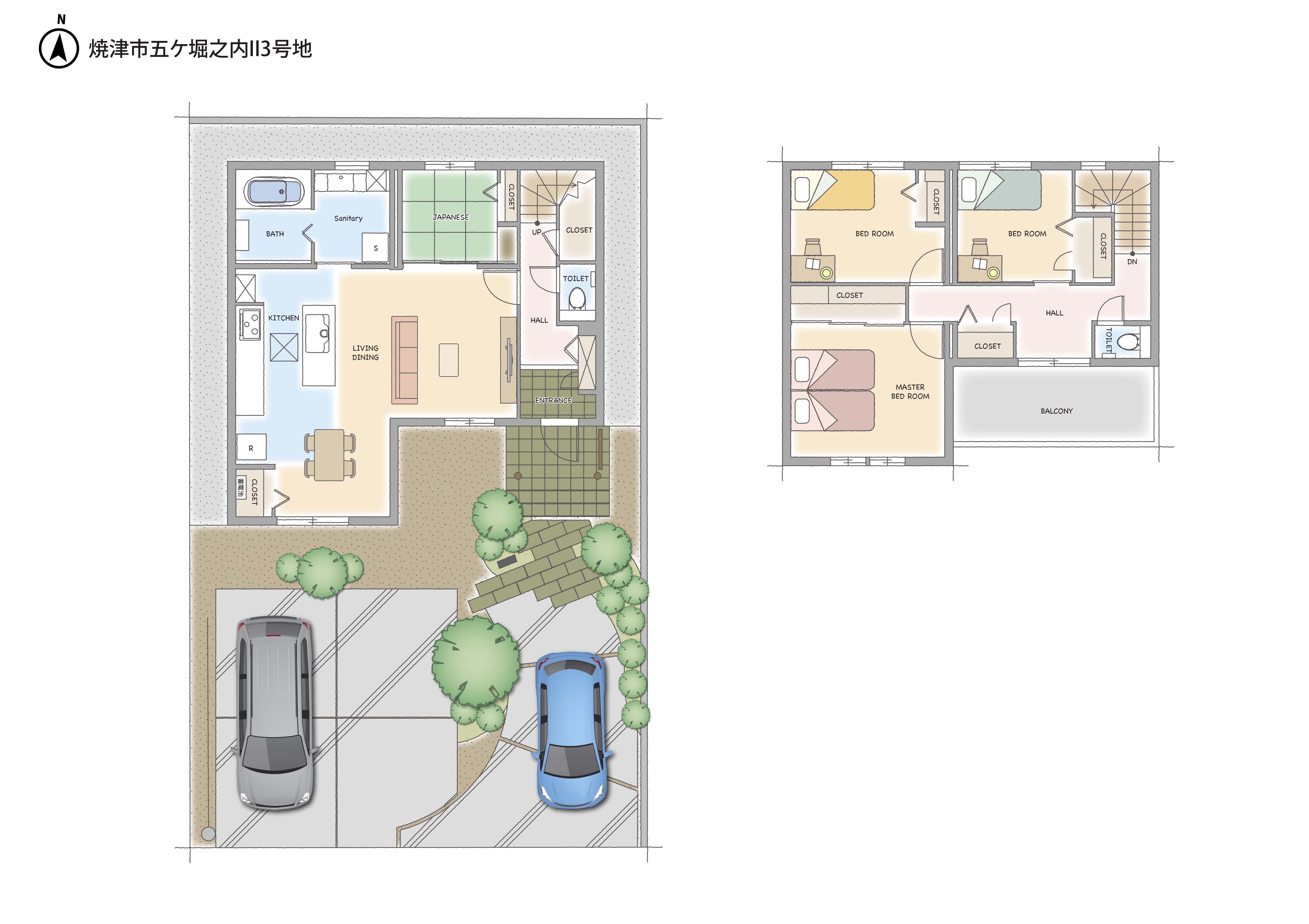 | 建物構造 | 【 10号地・ 5号地 】 軽量鉄骨造2階建、 【 1号地・ 3号地 】 木造(2×6)2階建 |