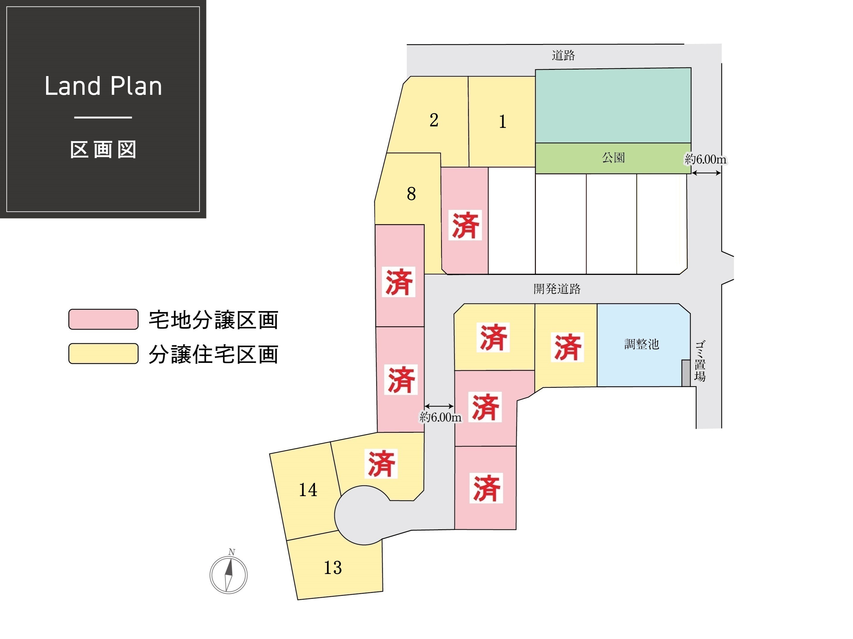 | 建物完成時期 | 【 1号地 ・ 2号地 】2025年4月、 【 8号地 】2026年3月、 【 13号地 ・ 14号地 】2024年9月 |