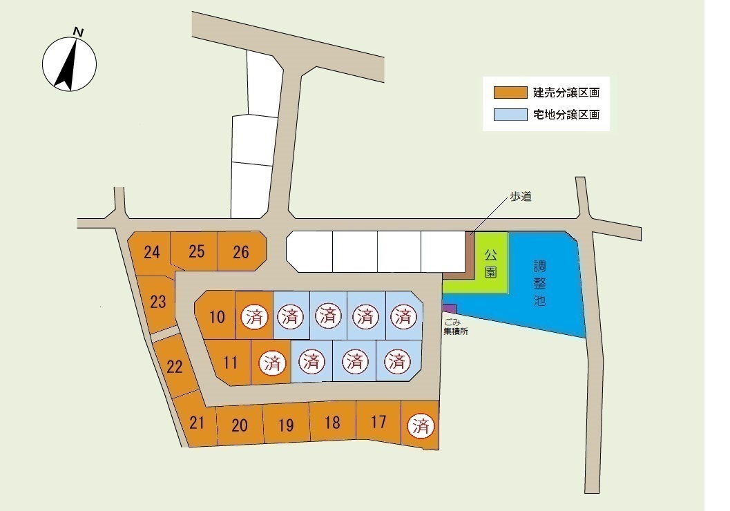 | 建物完成時期 | 【 17号地 ・ 18号地 ・ 19号地 】2025年6月、 【 20号地 ・ 21号地 ・ 22号地 ・ 23号地 】2025年7月、 【 10号地 ・ 11号地 ・ 24号地 ・ 25号地 ・ 26号地 】2025年8月 |