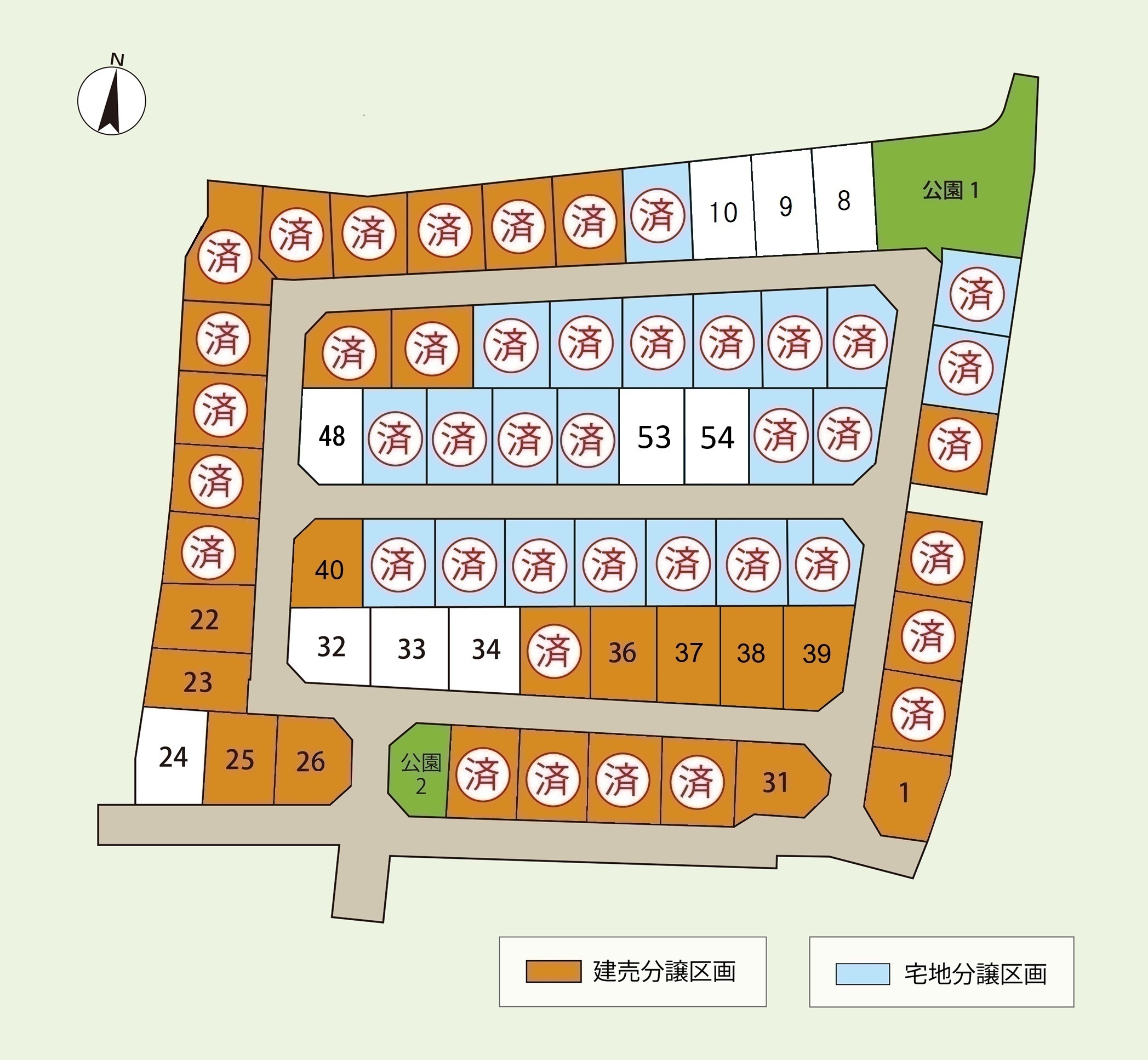 建物完成時期 | 【 31号地 ・ 26号地 】2024年6月、 【 25号地 】2024年10月、 【 23号地 ・ 22号地 】2024年5月、 【 1号地 】2023年11月、 【 36号地 】2025年6月、 【 37号地 ・ 38号地 ・ 39号地 ・ 40号地 】2025年7月 |