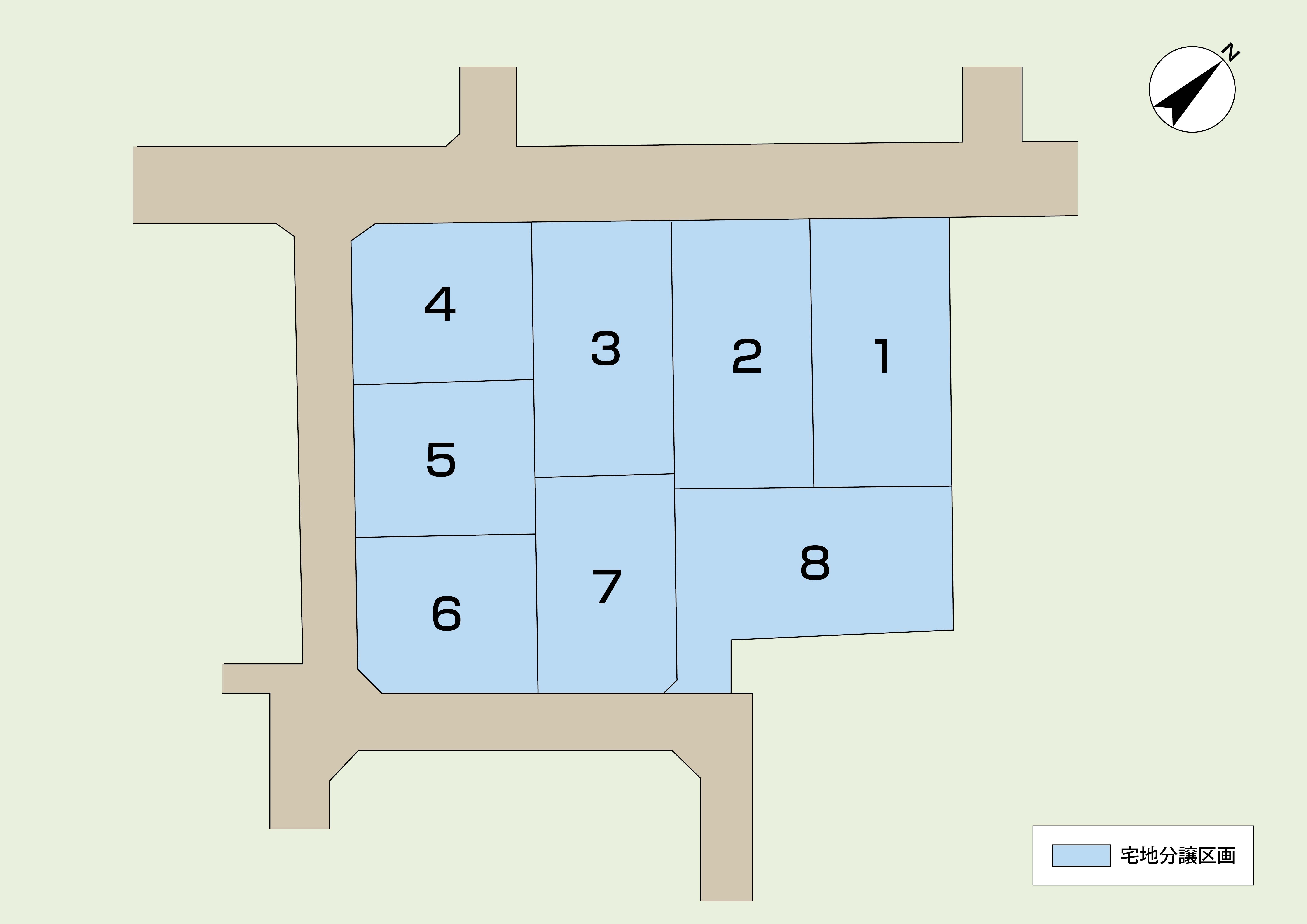| その他説明事項 | 1. 地盤調査は、各区画毎購入者様決定後実施願います。調査の結果、基礎補強が必要となる場合は購入者様の負担で施工していただきます。 2.自治会は沓谷一丁目自治会にご加入いただきます。 |