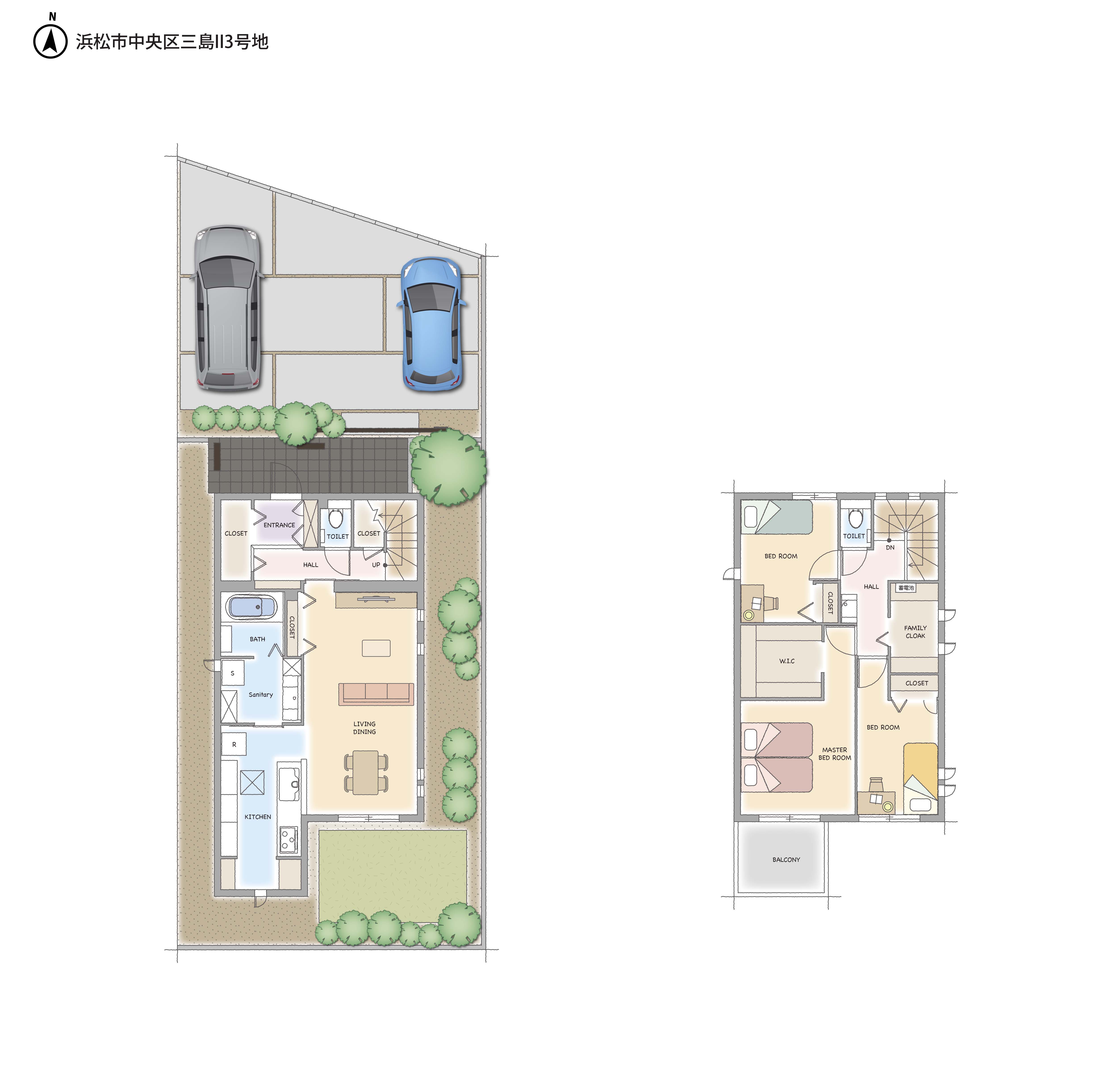 | 建物構造 | 【 1号地・ 2号地・ 3号地 】 軽量鉄骨造2階建 |