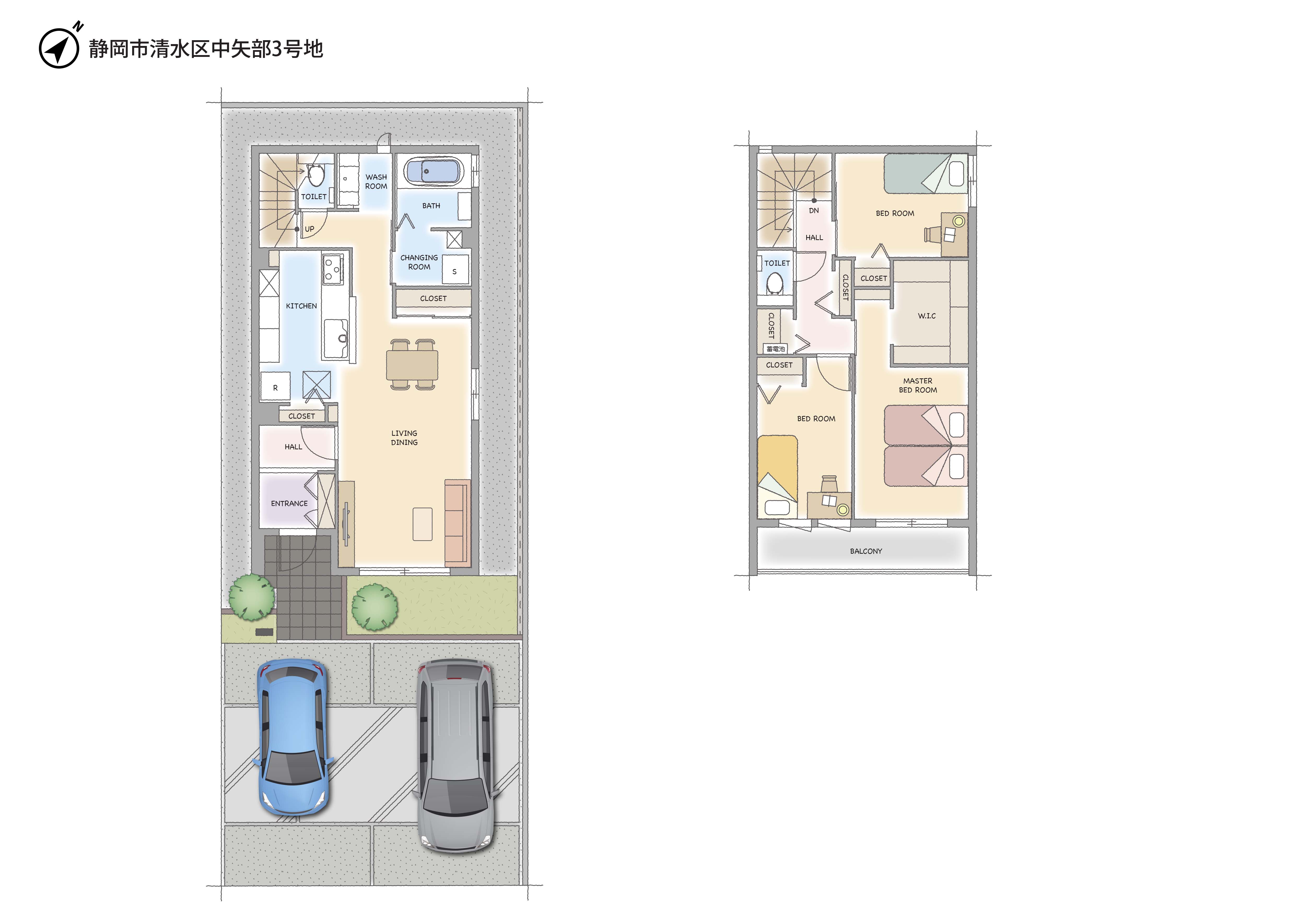 | 建物構造 | 【 1号地・ 2号地・ 3号地 】 軽量鉄骨造2階建 |
