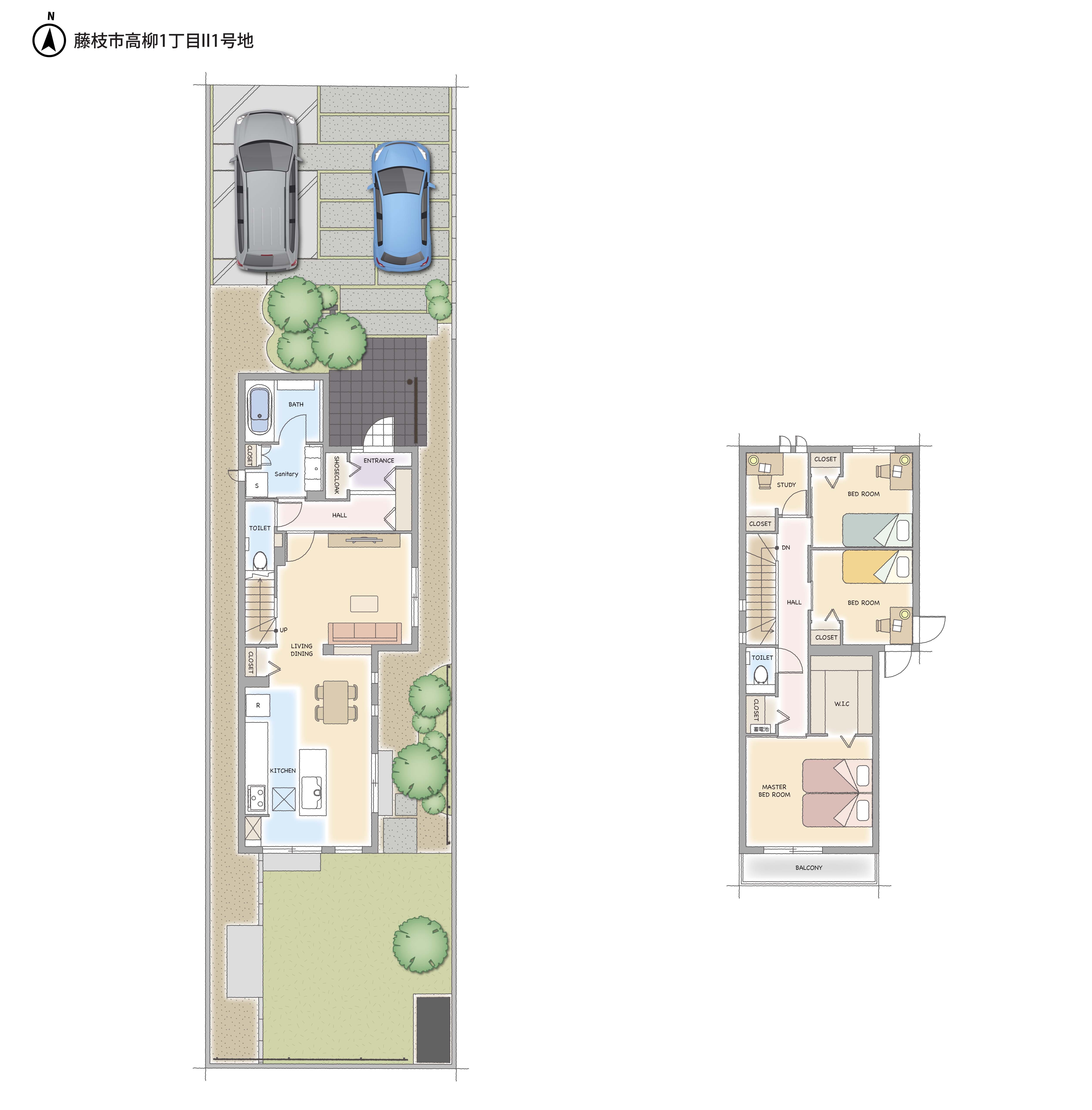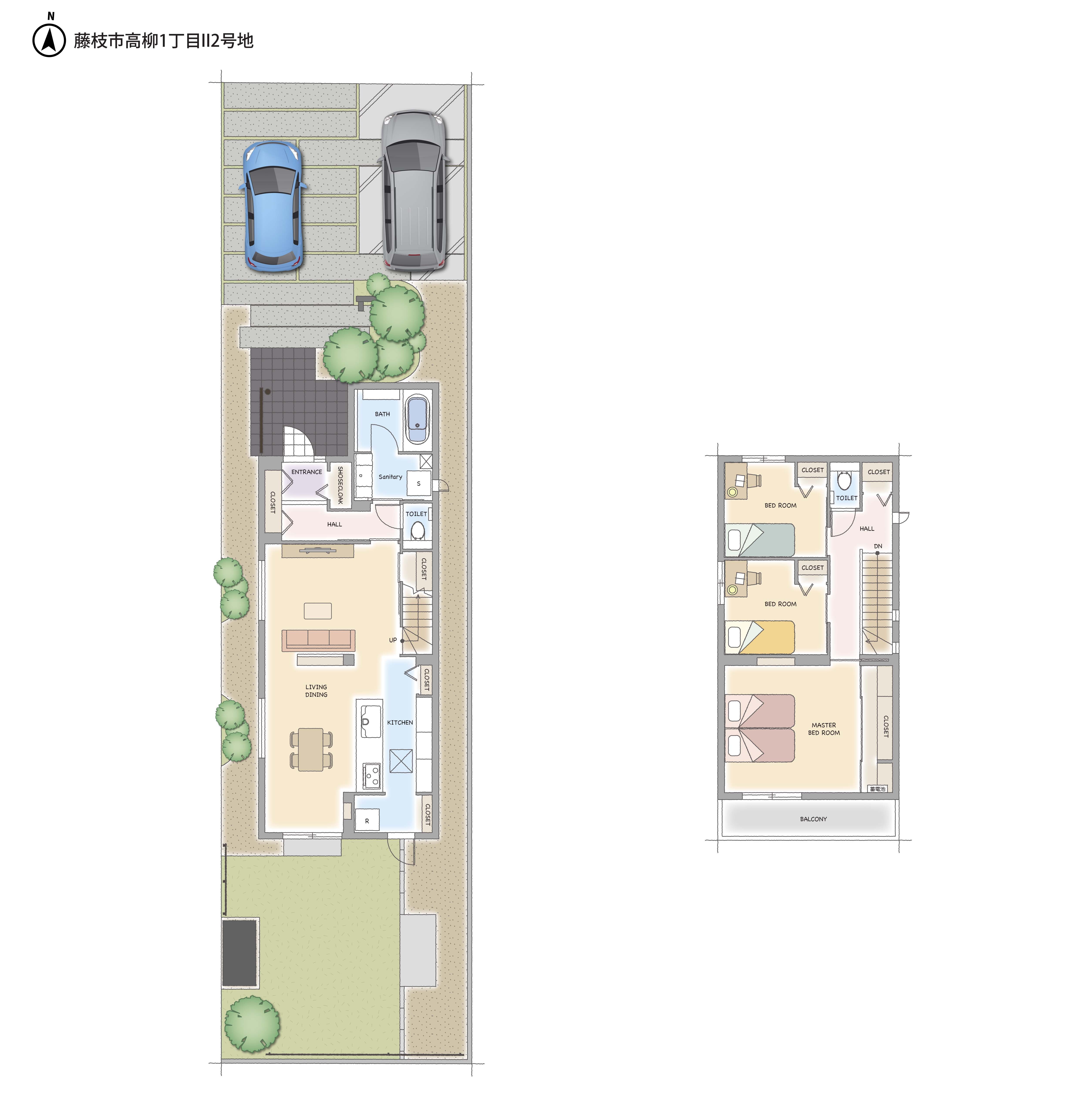 | 建物構造 | 【 1号地・ 2号地 】 軽量鉄骨造2階建 |