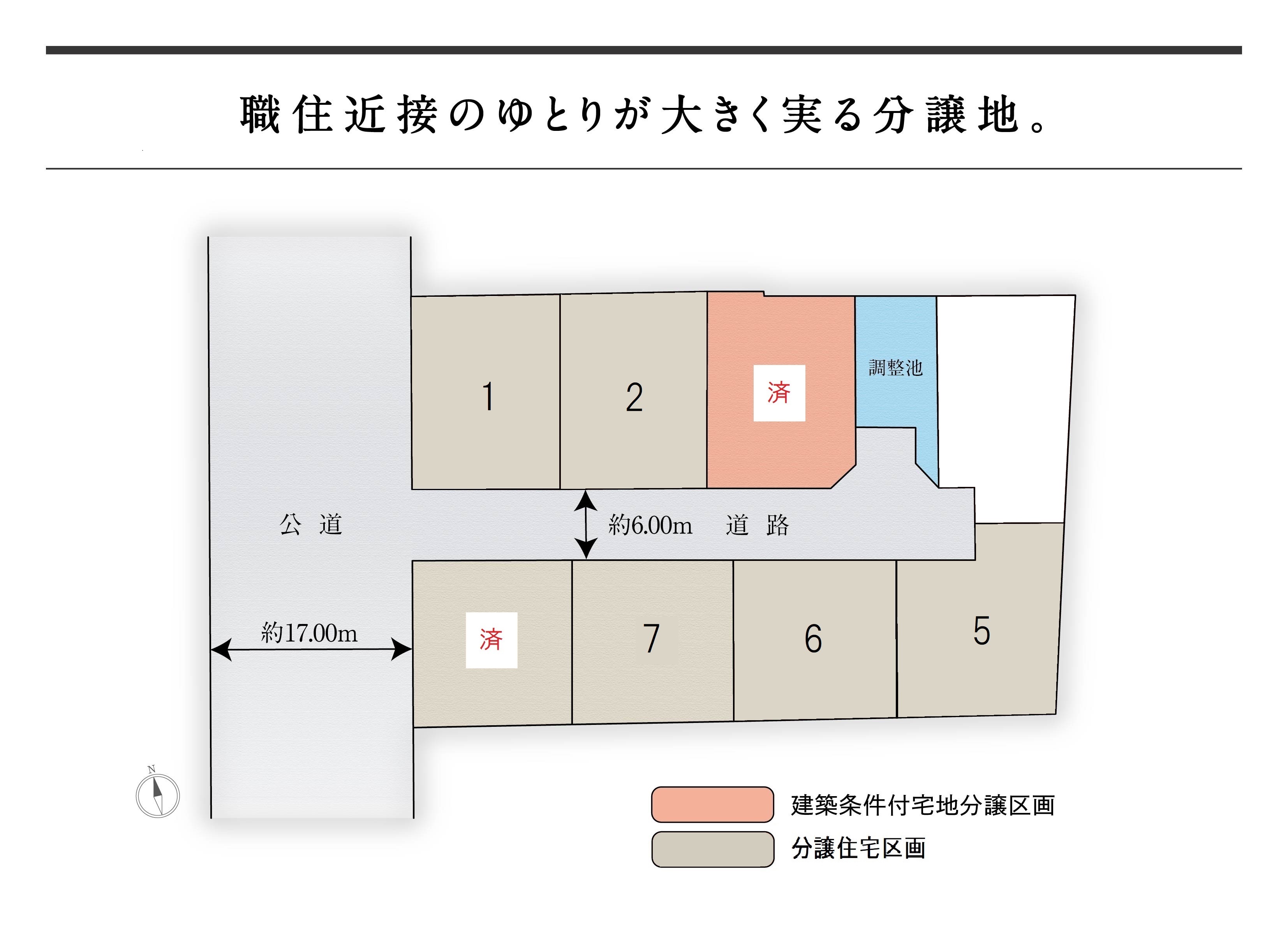 | 建物構造 | 【 6号地・ 7号地・ 2号地・ 5号地 】 軽量鉄骨造2階建、 【 1号地 】 木造(2×6)2階建 |