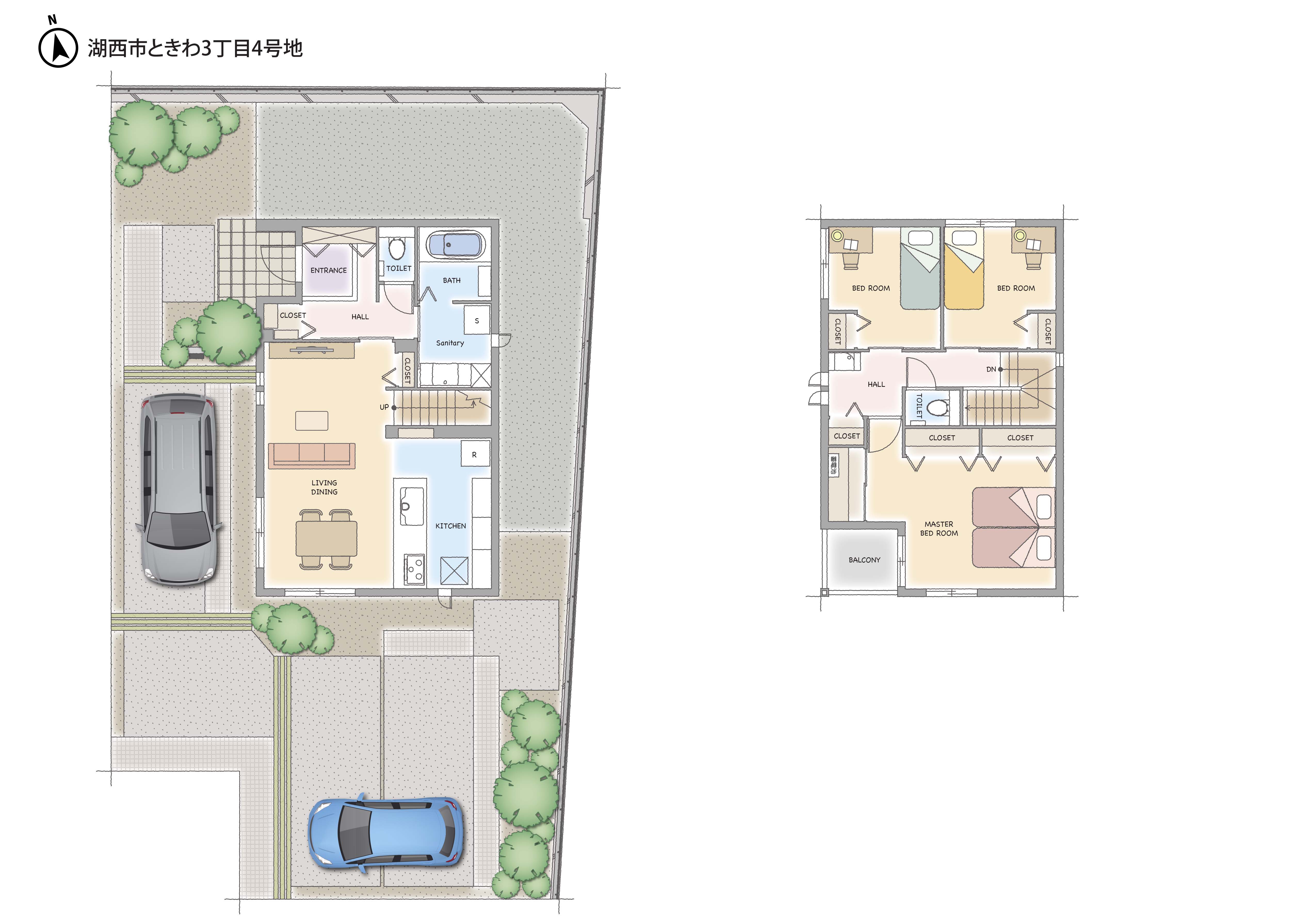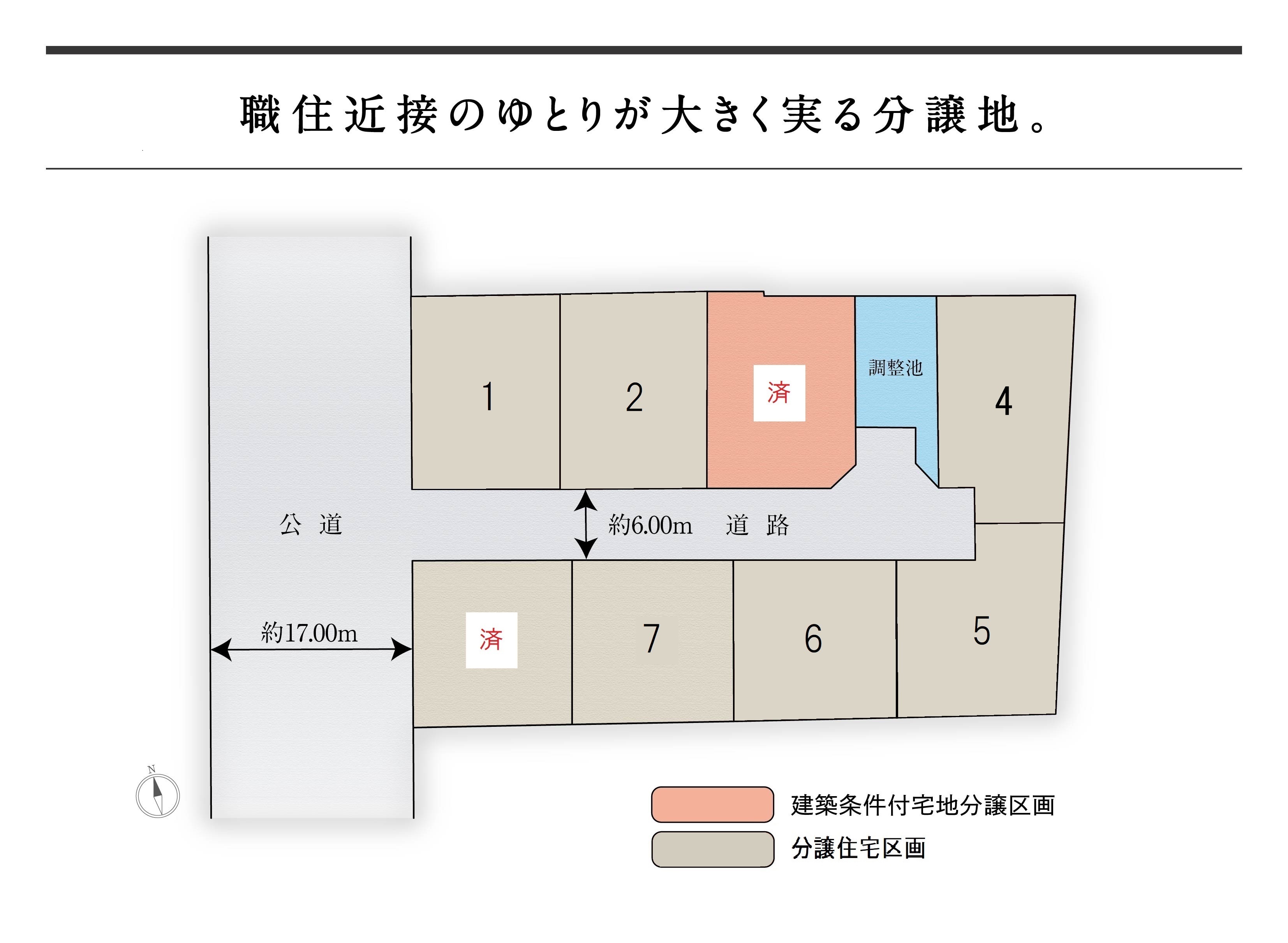 | 建物構造 | 【 2号地・ 4号地・ 5号地・ 6号地・ 7号地 】 軽量鉄骨造2階建、 【 1号地 】 木造(2×6)2階建 |