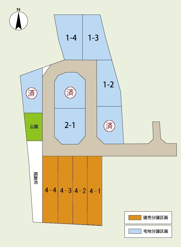 | 建物完成時期 | 【 4-1号地 ・ 4-2号地 ・ 4-3号地 ・ 4-4号地 】2025年8月 |