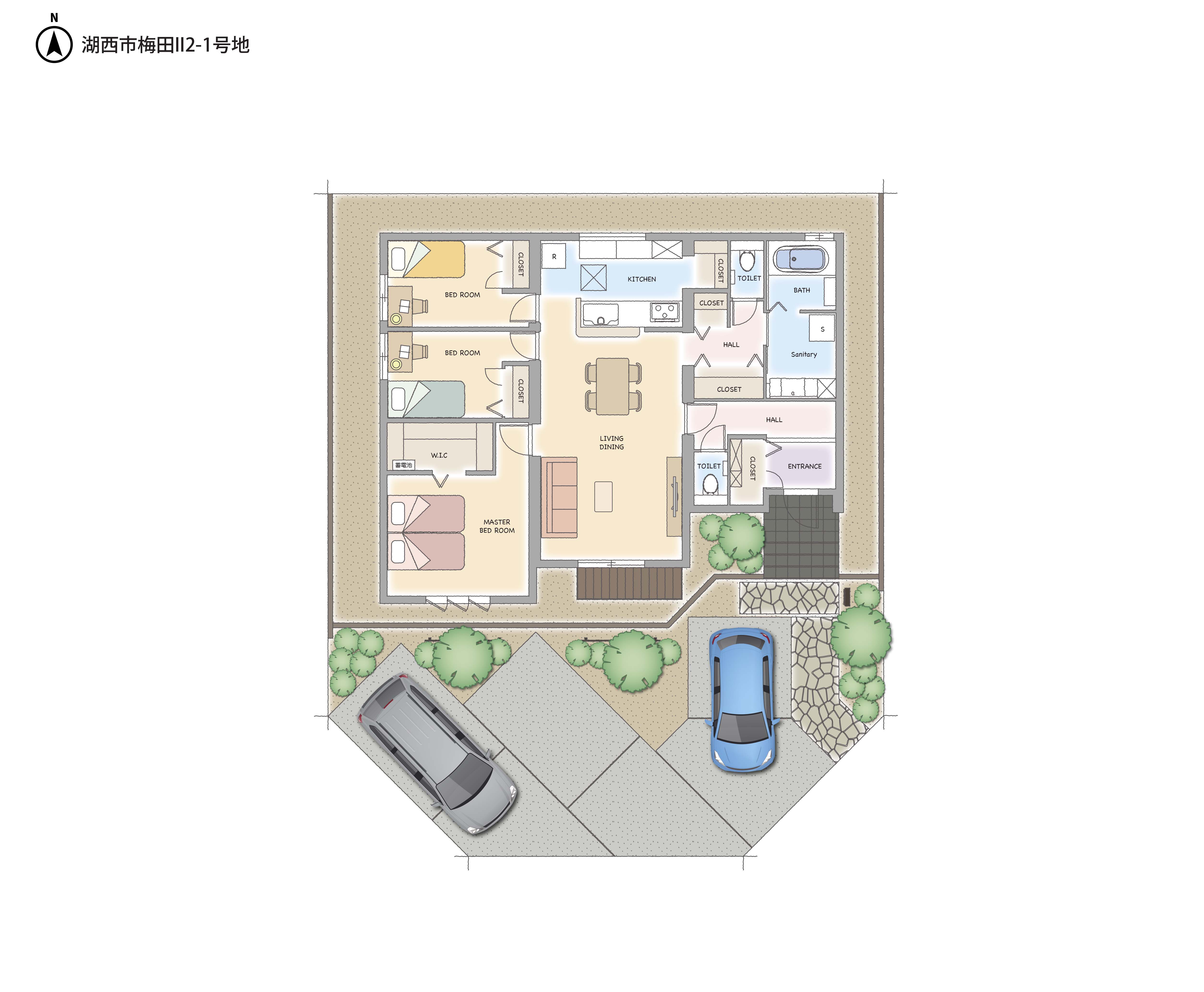 | その他説明事項 | 建築確認申請費、性能評価申請費、長期優良住宅申請費、瑕疵担保保険料、水道納付金、 TVアンテナ(地デジのみ)は建物価格に含みます。 尚、上記価格には、建物表示・保存登記、土地所有権移転登記、収入印紙代、借入れ諸経費、 火災保険料、引越し費用等は、含みません。 |