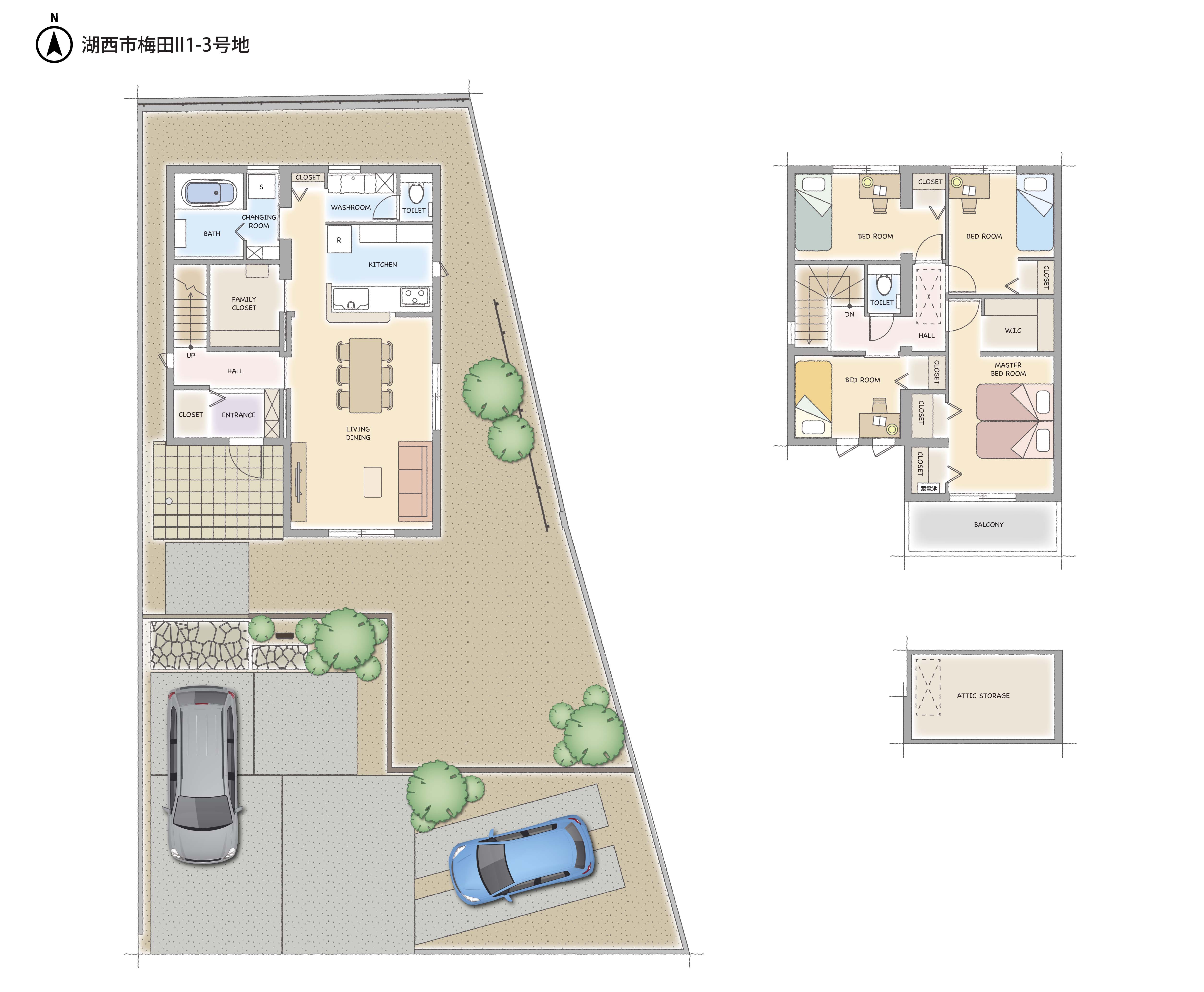 | 建物タイプ | 【 4-1号地・ 4-2号地・ 4-3号地・ 4-4号地 】スマートパワーステーションFXアーバン、 【 1-3号地・ 1-4号地・ 2-1号地 】グランツーユーファイブ |