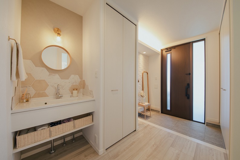 洗面が玄関付近にあると、子どものお友だちや来客も気軽に使うことができます。