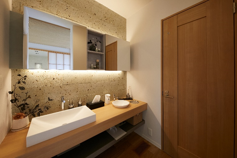 洗面脱衣室は、プライベートな空間であり、雑多になりがちです。玄関手洗いでは、そういった生活空間と来客動線を隔てることができ、家族にも来客にもメリットとなります。