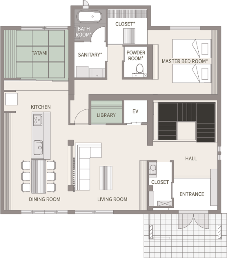 さらに来客時には、玄関ホールからLDKを通らずに和室に案内できるので、お客様がいらしている時にも家族の空間を確保することができます。