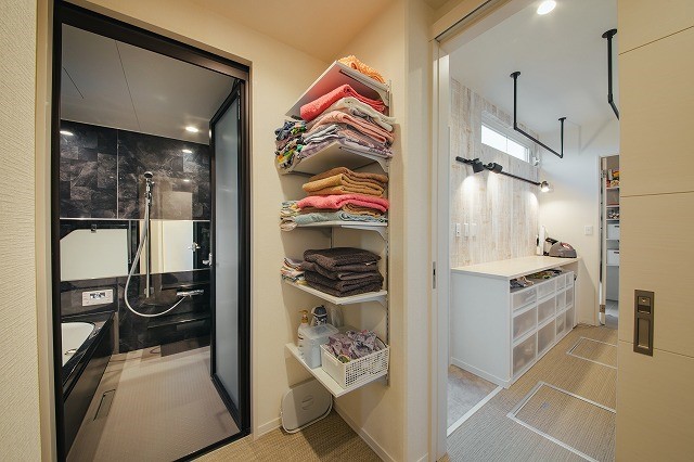 ランドリーを設置する場合このパターンが一番多いかもしれません。ランドリーだけにスペースを割くよりは脱衣室と合わせて空間を有効活用できます。