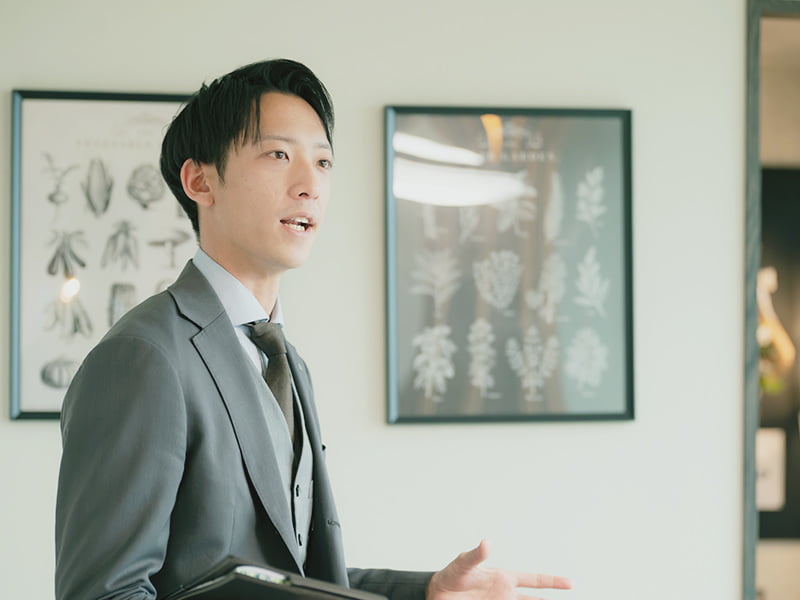 高級分譲マンションの提案をします。街並みに合ったマンションの企画から、土地の仕入れや広告戦略の立案まで、接客以外の業務も担当します。