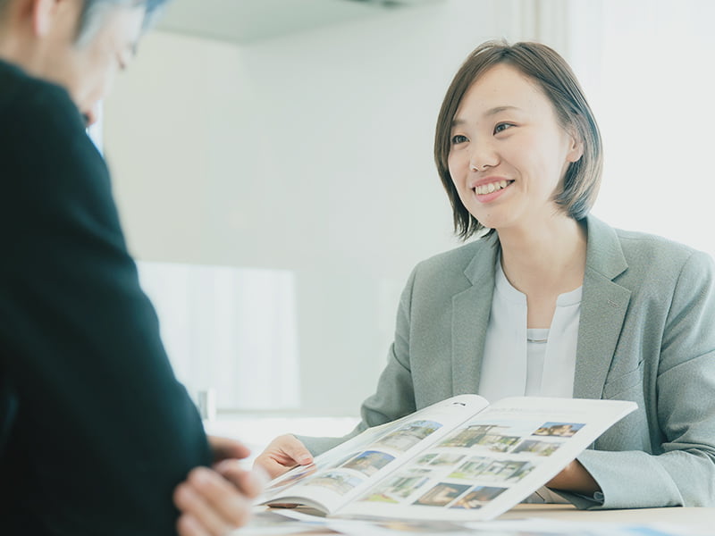 土地や間取りなど建築に関することはもちろん、建築時期や資金計画など、家づくりをトータルに提案します。ご契約前からお引き渡し後までお客様と密に関わります。